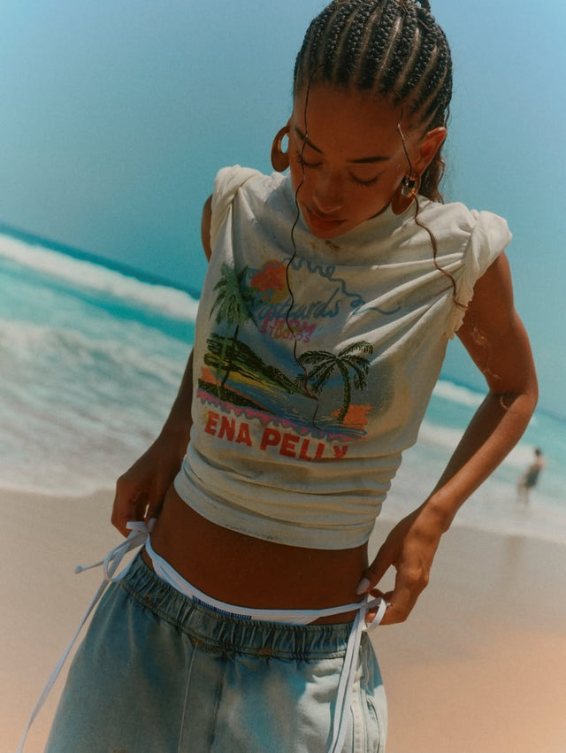 ENA PELLY - Riviera Watercolour Tee - Vintage White